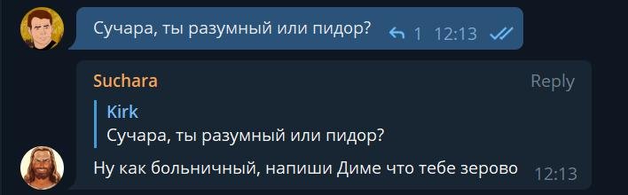 Идея этого в том, что если вы токсик по жизни, то Сучара будет вас хуесосить. Если вы благородный и благодарный человек, то Сучара будет с вами вежлив.