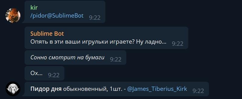Кто не знает, Sublime Bot был наверное первым ботом в телеге, кто выбирал пидора дня.