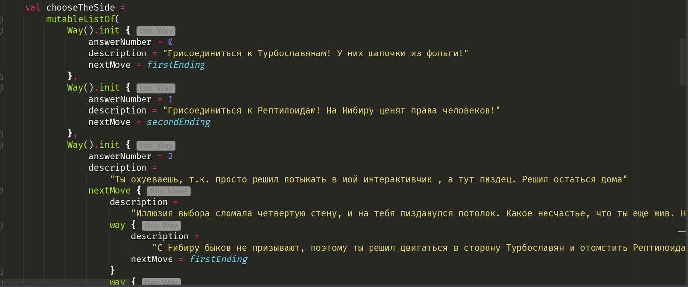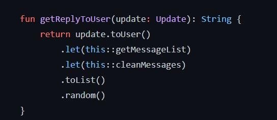 Отправной код бота - это элементарно произведение компьютерного искусства, симфония на Котлине(отличным прогрессивным языке программирования).