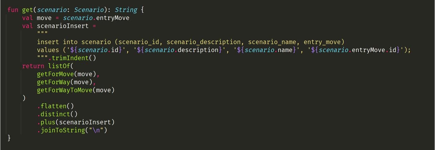 Поэтому я написал удобный DSL, где это все более-менее интуитивно запихивается, а на выходе получается SQL для инсерта в базу.