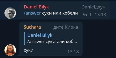 Отвечать можно текстом, картинкой, гифкой, аудио, контактом, геопозицией, короче чем угодно, Сучара все передаст.