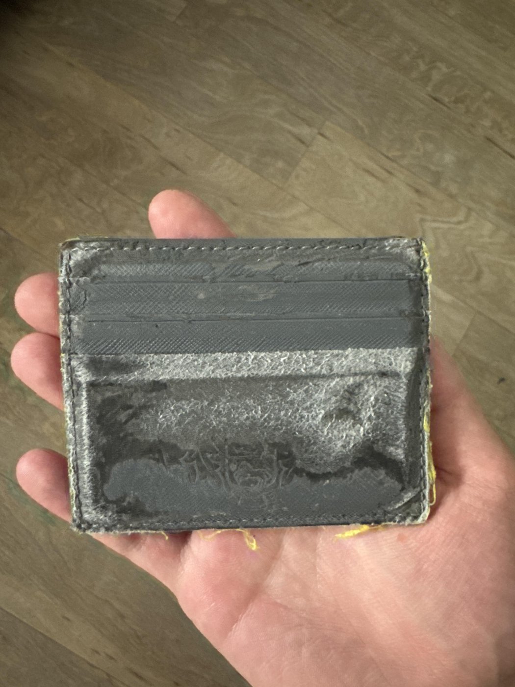 Где-то в 10 классе мама подарила кожаный кошелёк Cacharel. Прекрасная гладкая кожа, разделитель внутри сделаны из ягнячей кожи, носил его лет 15 каждый день. Со временем он приобрёл форму моей 5й точки, так как в заднем кармане чаще всего был. После жесткого падения на скорости за 70 на роликах осталась царапина. Углы пообтерлись, но тем не менее, швы не разлезлись, и он до сих пор лежит в комоде.