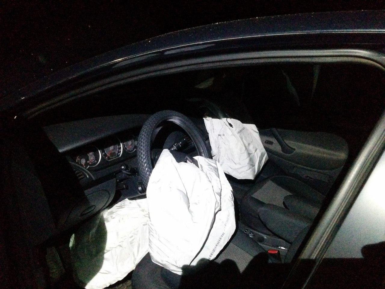 Все были пристёгнуты, дочь в автокресле, отделались синяками, передний пассажир пил пиво - поэтому получил синяк от банки на груди после срабатывания подушек. Вообще в машине выстрелило 7 пиропатронов, поэтому после остановки мы очутились в такой дымовухе, это удивило больше всего: 2 патрона натянули ремни, 2 выстрелили подушки, 2 отстрелили двигатель чтобы он уходил вниз, и ещё один отстрелил клемму от аккума.
