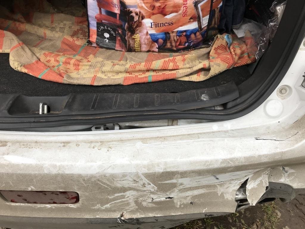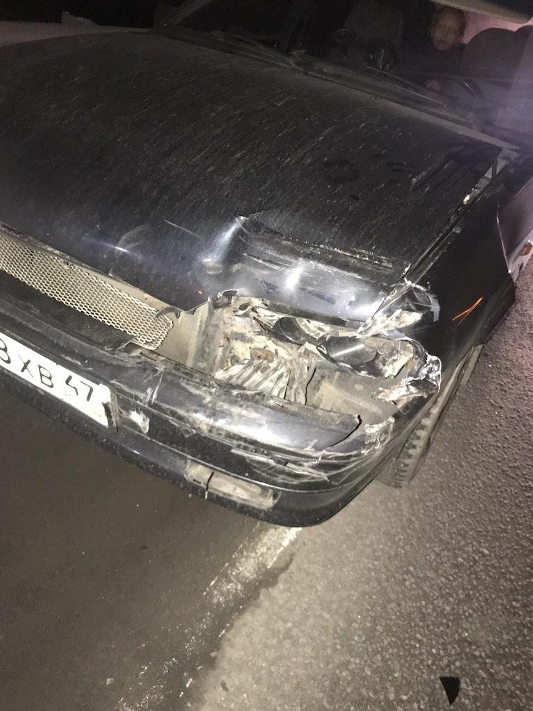 В итоге у нас разбит бампер, обе фары, противотуманка, ходовые огни, оба крыла, повело капот, под капотом вырвало крепления.
