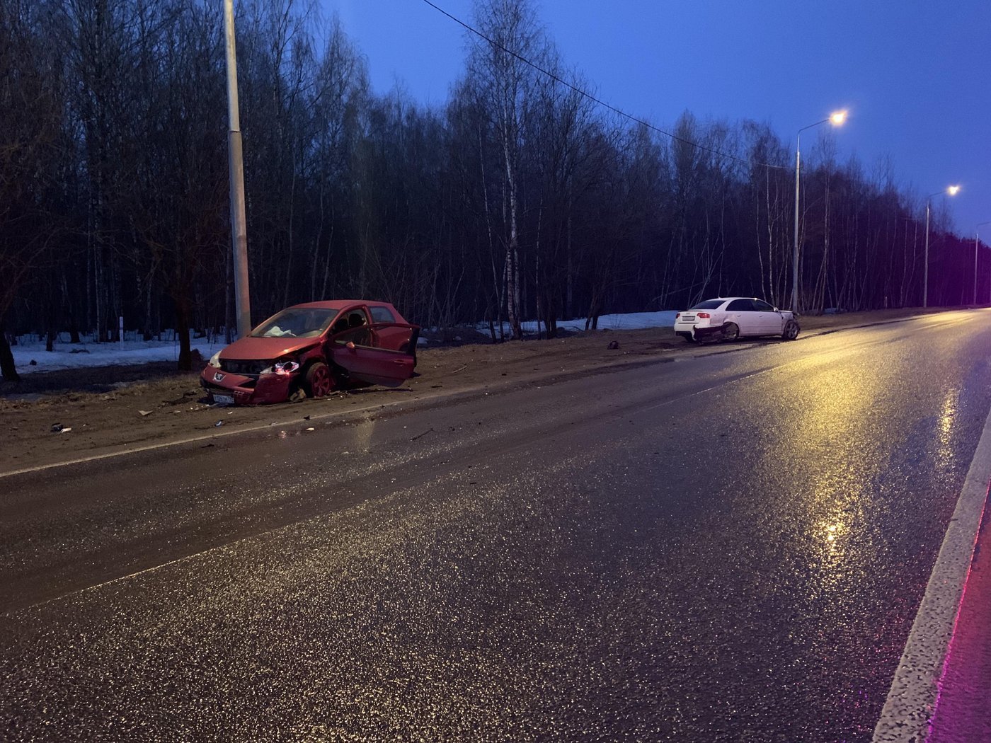 Начинаю тормозить и интуитивно прижимаюсь к обочине. Первый удар, левая передняя часть капота, с его передом. Ауди начинает крутить и задом он бьет мне в задний бампер. Я останавливаюсь практически сразу, правая дверь с 5-10 сантиметрах от столба, была бы скорость больше - возможно и столб бы задел.