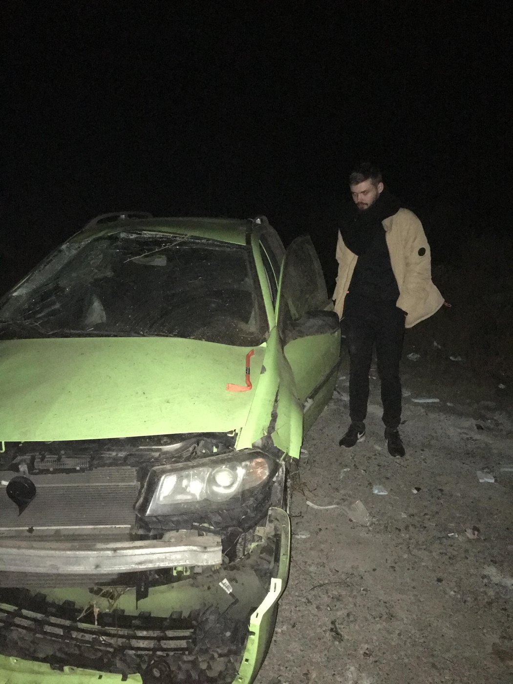 Погода была прямо сказать не очень, снег шел, и вот еду я значит за городом и прям на повороте ровненько в меня вылетает VW который решил в скользкий поворот зайти не всей своей скорости...