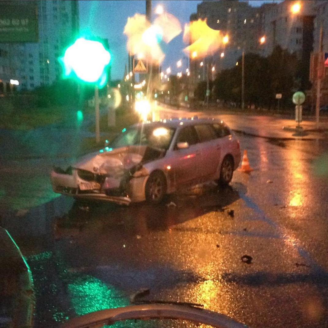 Так вот. Едем по направлению к кольцу на 3-ей Дачной, которое я не очень люблю из-за количества полос и максимально хаотичному движению по оным из-за отсутствия разметки из-за хаотичного движения по оным (break;), справа наблюдается автобус, слева - автомобили, которые выехали с кольца и вдруг, из-за автомобилей слева на нас летит чудо российского автопрома прямо в лоб. Всё что успел сделать - вжать тормоз так, что нога потом болела минут 20. Что самое интересное - из-за направления удара (успел в последний момент немного отрулить влево) удар пришелся в правый лонжерон, но по касательной и подушки не сработали - после в сервисе сказали, что если бы сантиметров на 5-10 левее - ещё бы и лобовое менять пришлось бы и подушки. Так же в автомобиле были пристегнуты вообще все - даже бабушка на заднем сидении.