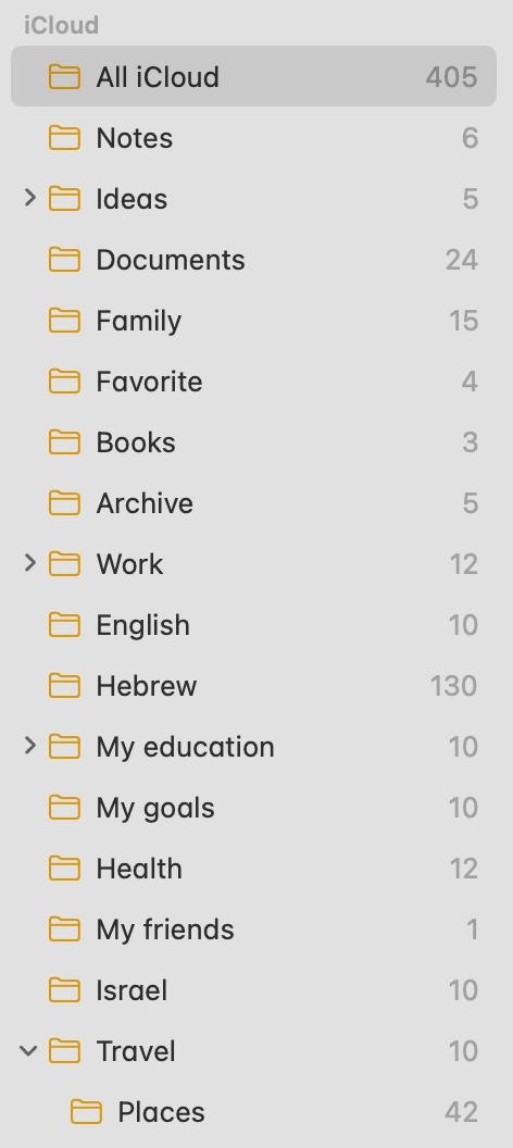 — эппл заметки. Очень люблю, хорошо работает поиск даже по рукописным заметкам, если они написаны на английском. Выглядит это так, некоторые категории я разбиваю еще на сабкатегории: