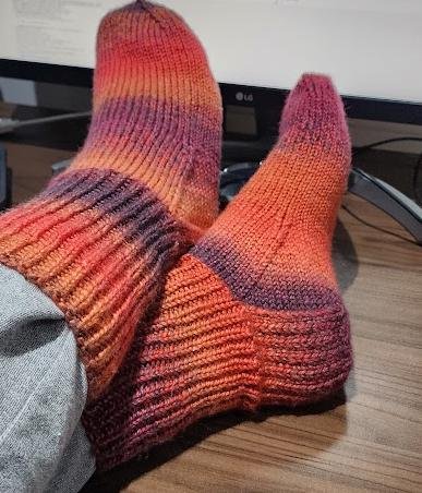 Вязаные женой шерстяные носочки в самолёте. Чтобы ноги не мёрзли и обувь не жала. И как бы не без обуви, и как бы без обуви. Вообще кайф.