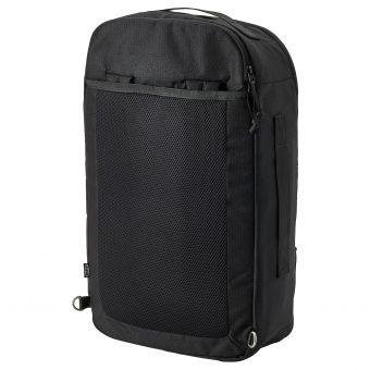 36 литоров, замок открывается по всему периметру, есть карман для ноутбука, материалы – суперкачественные, форма прямоугольная. При необходимости можно спрятать лямки в специальный карман и нести его держа за горизонтальную ручку.