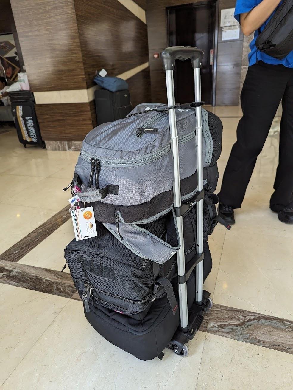 Соотв, складываешь её и прячешь в рюкзак в момент чекинов. Сама телега весит около 1300г, помещается в любой рюкзак для ноутбука. Ссылка на ВБ вот