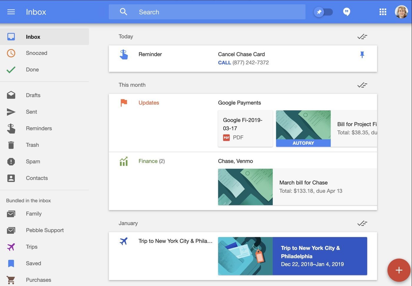 • Запущен в 2014 году как бета-проект, Inbox представил свежий взгляд на электронную почту.