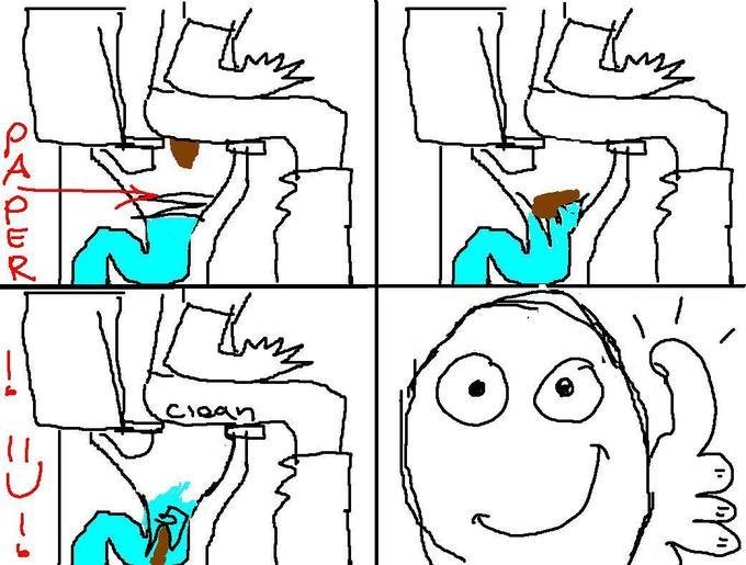 Очень полезное знание которое переросло в навык это сначала бросить листок бумаги в унитаз ,чтобы не намочить себя при бульке, тем более в общественный :)