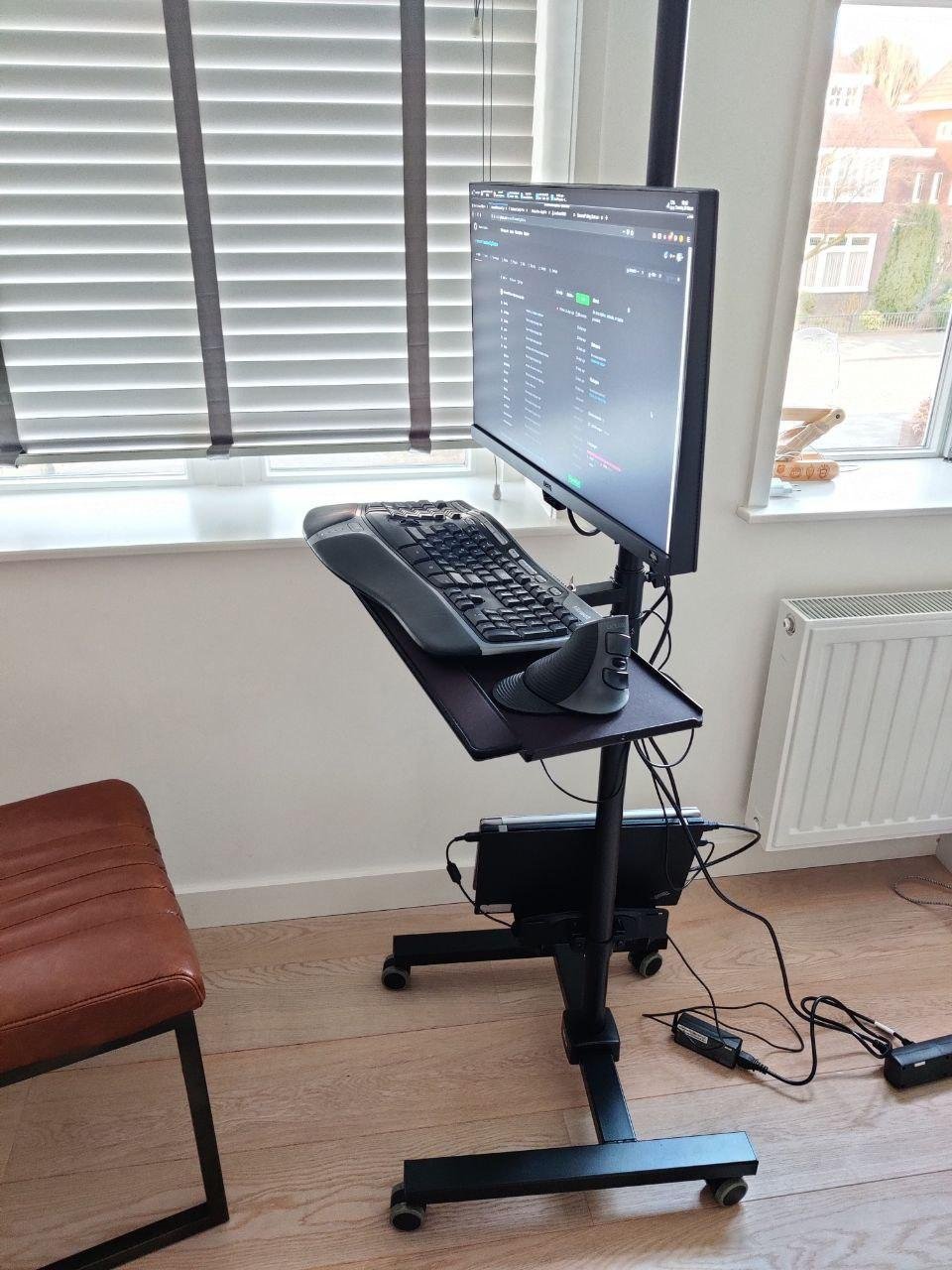 Я взял его и понял, что постоянно работать стоя не хочу и иногда прихожу на него поработать на час-два. Для меня это лучше чем опускать туда сюда, я просто перехожу в другую комнату и заодно меняю обстановку.