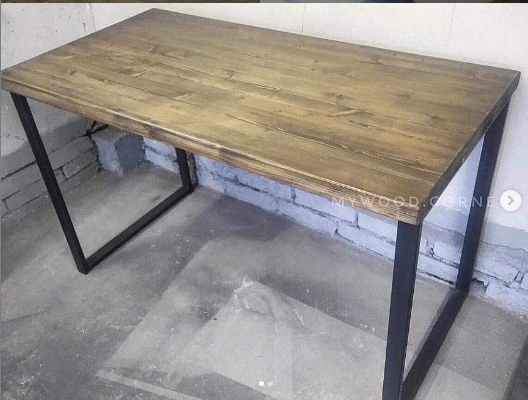 Заказывал стол у ребят. По стоимости почти, как из Икеи (кухонная столешница + ножки). Но лучше. Выпиливают под любые размеры, любой высоты, можно выбрать материал и цвет морилки.