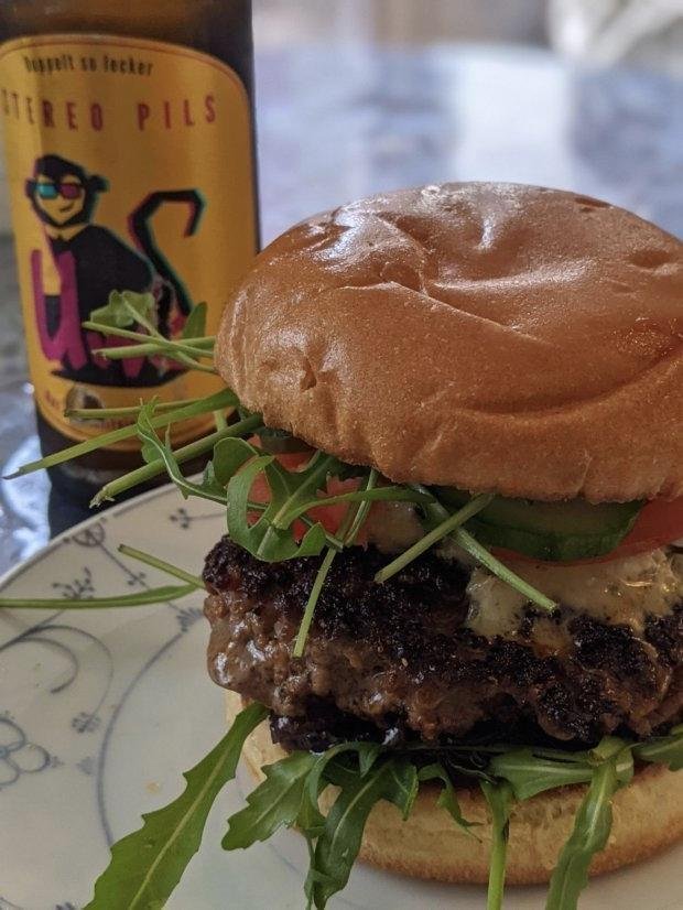Бургер с карамелизованным луком и голубым сыром