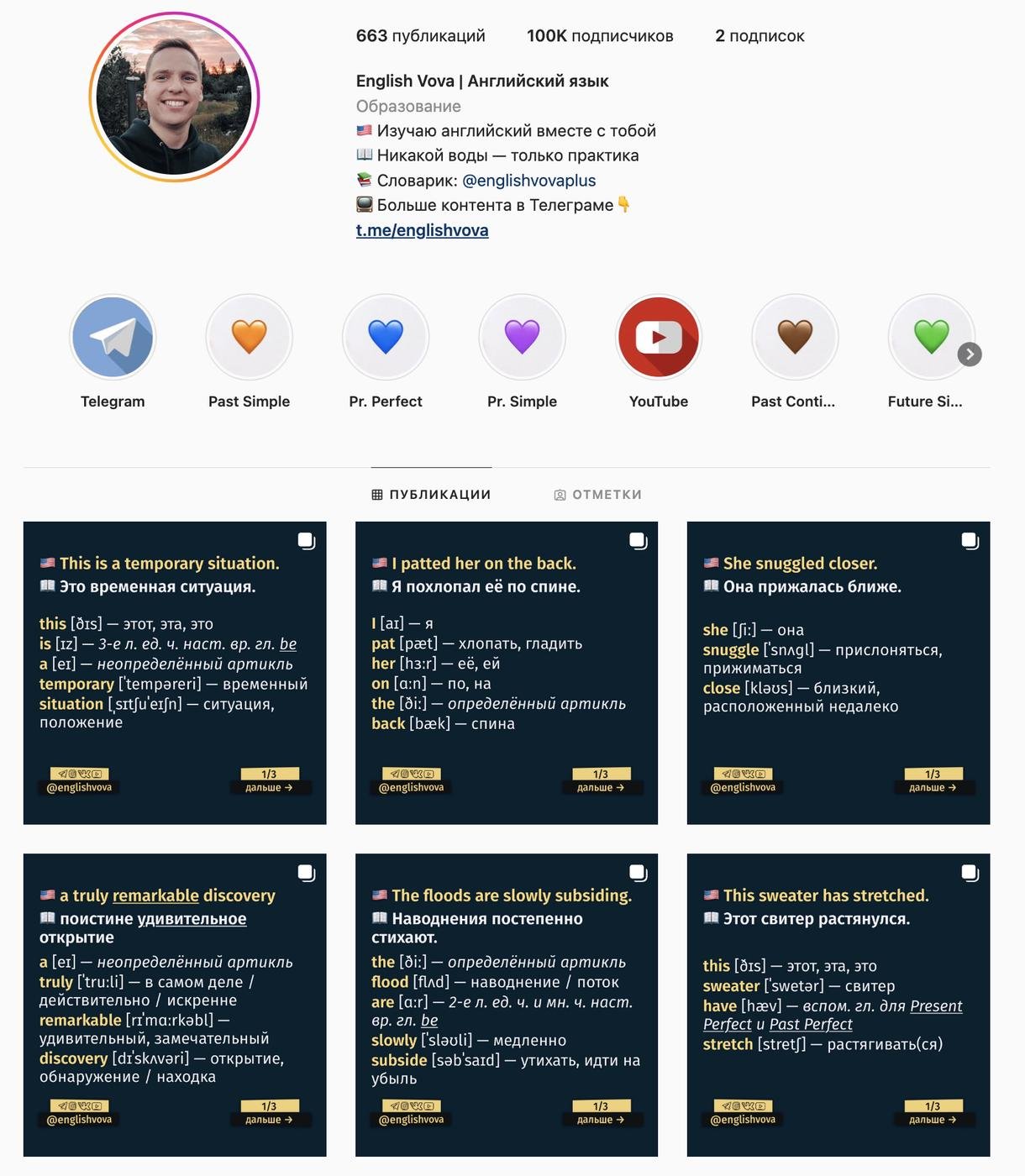 ⭐️ Проект: English Vova. Изучаю английский и помогаю учить его по интересной методике.