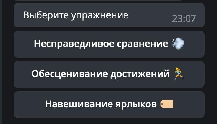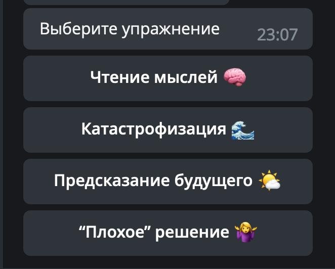 ⭐️ Проект: телеграм-бот c подборкой КПТ-практик от тревожности и проблем с самооценкой.