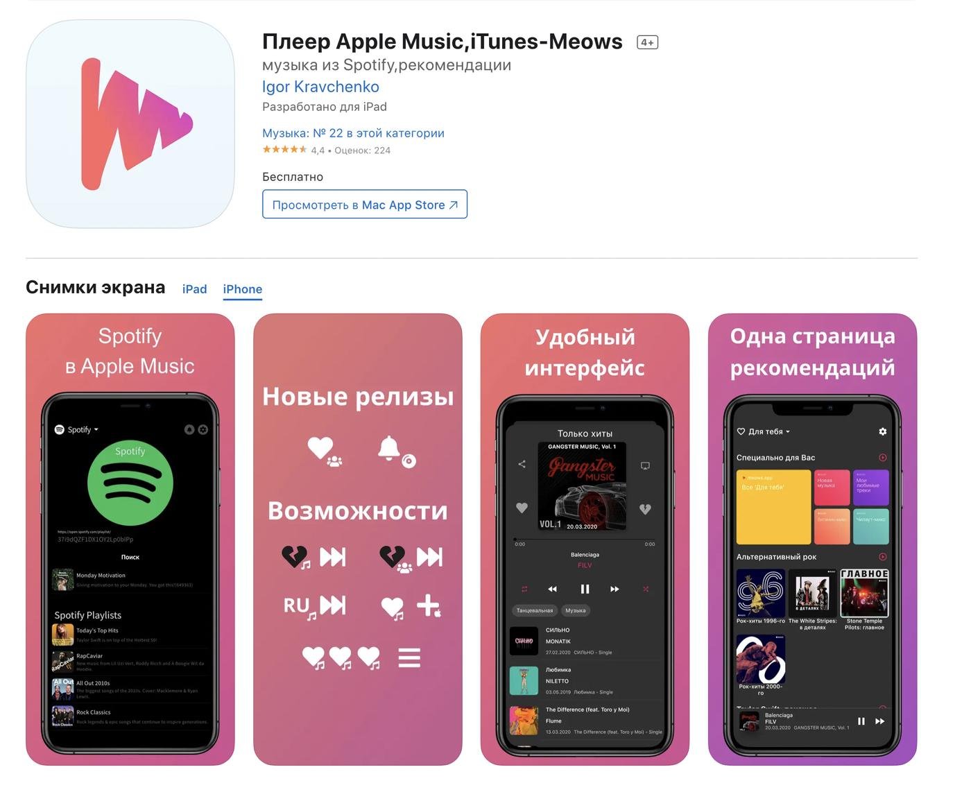 ⭐️ Проект: Meows.app - плеер для Apple Music.
