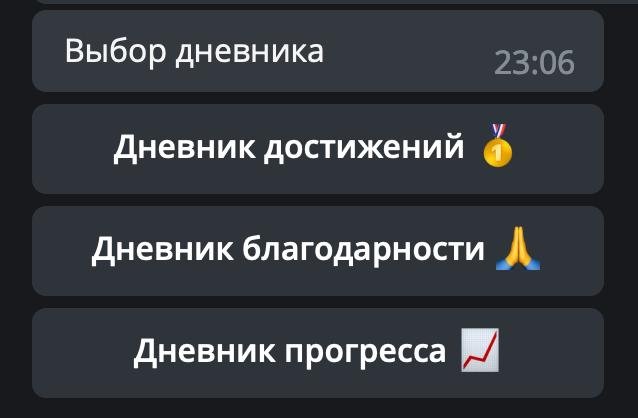 В боте собраны полноценные КПТ-упражнения для устранения тревожности и проблем с самооценкой. Есть также дневники благодарности и просто дневники.