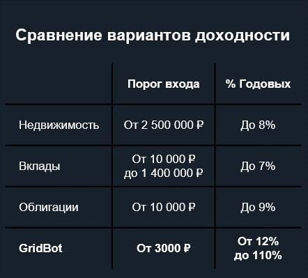 Помогает стабильно зарабатывать на волатильности рынка, освобождая от необходимости постоянно следить за ценой, заниматься предсказаниями и искать точки входа и выхода.