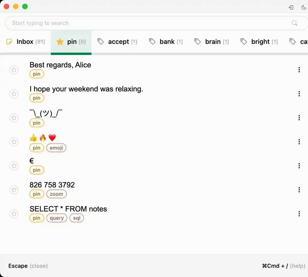 А еще трекает клипборд, поддерживает теги, синхронизирует данные через Firebase, позволяет экспортировать в разные форматы.