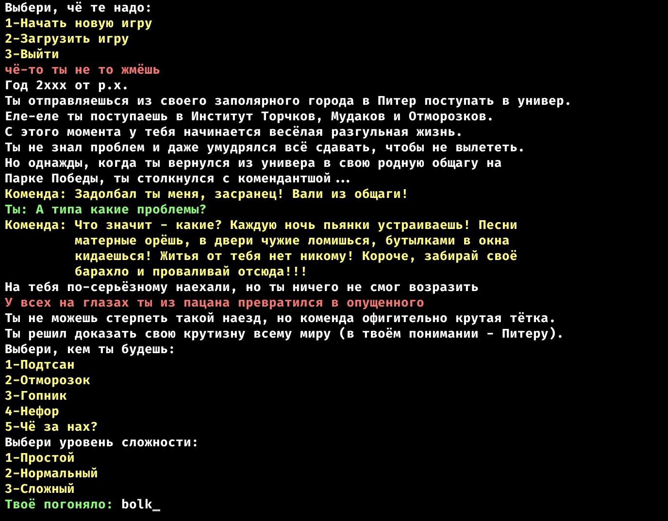 ⭐️ Проект: текстовый квест из двухтысячных «Гопник-2»