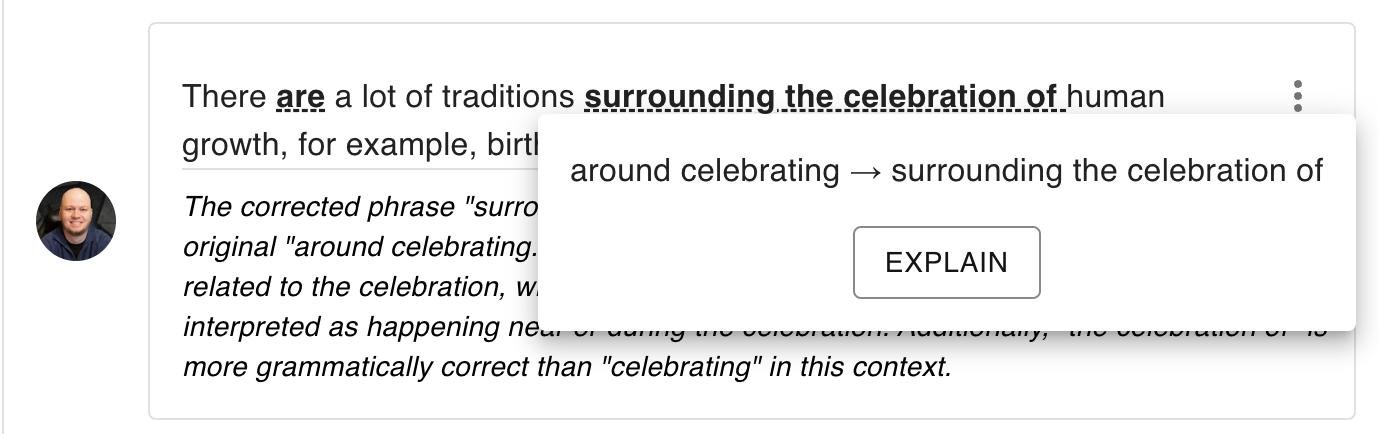 Ваши ответы сразу перефразируются чтобы звучали более натурально (как в DeepL, или Grammarly). Так постепенно вы набираетесь опыта и начинаете думать на изучаемом языке.