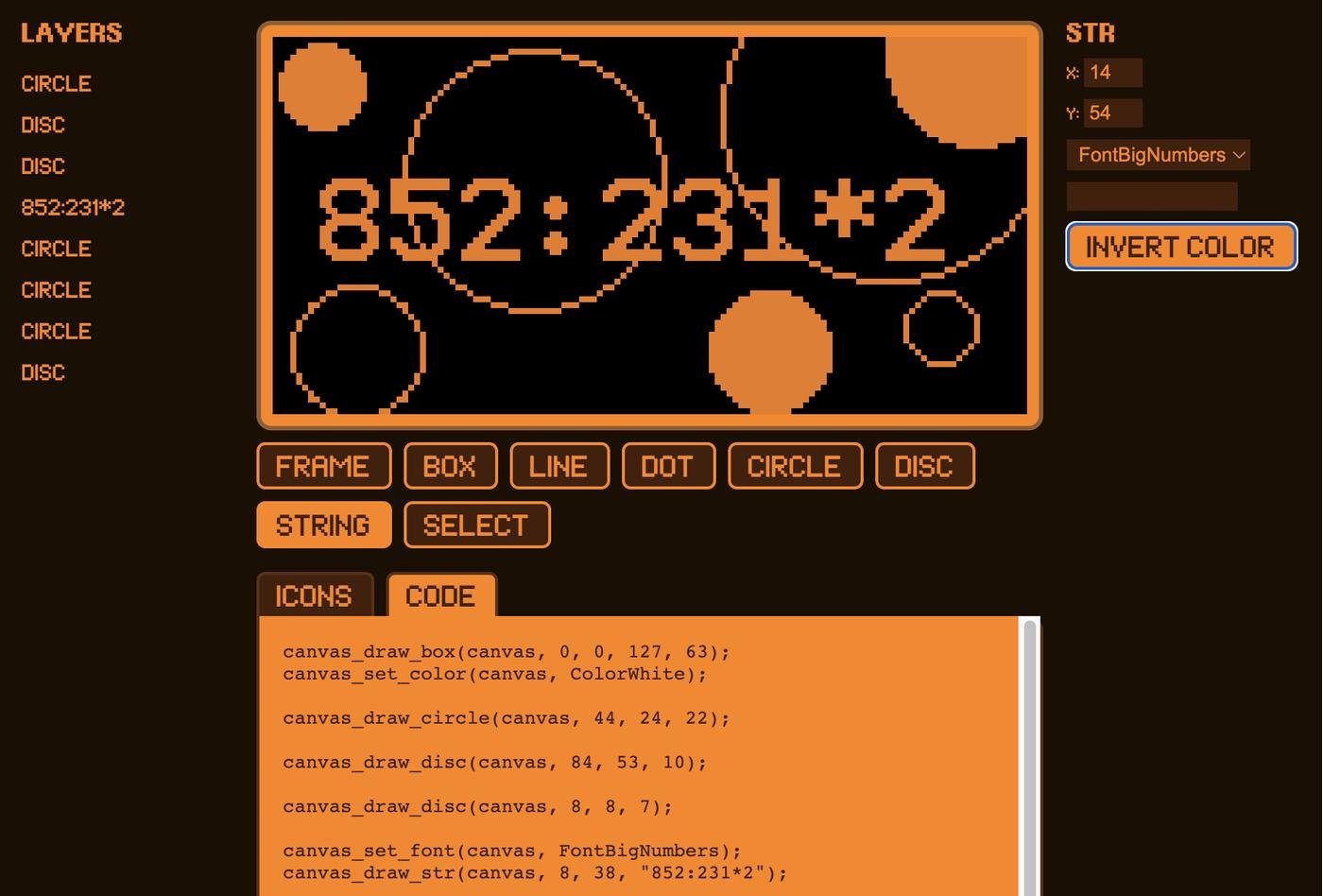 Сейчас это черно-белый пиксельный редактор для LCD экранов. При желании можно адаптировать под любой пиксельный интерфейс или библиотеку.