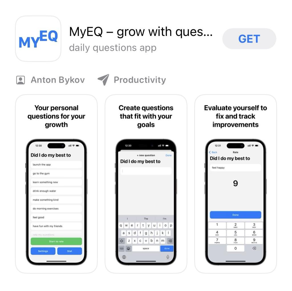 В приложении можно создавать свои вопросы, оценивать их и смотреть оценки. Есть архив для более неактуальных вопросов. Можно включить нотификации, чтобы не забывать себя оценивать. Аккаунт заводить ненужно – все данных хранятся в вашем iCloud.