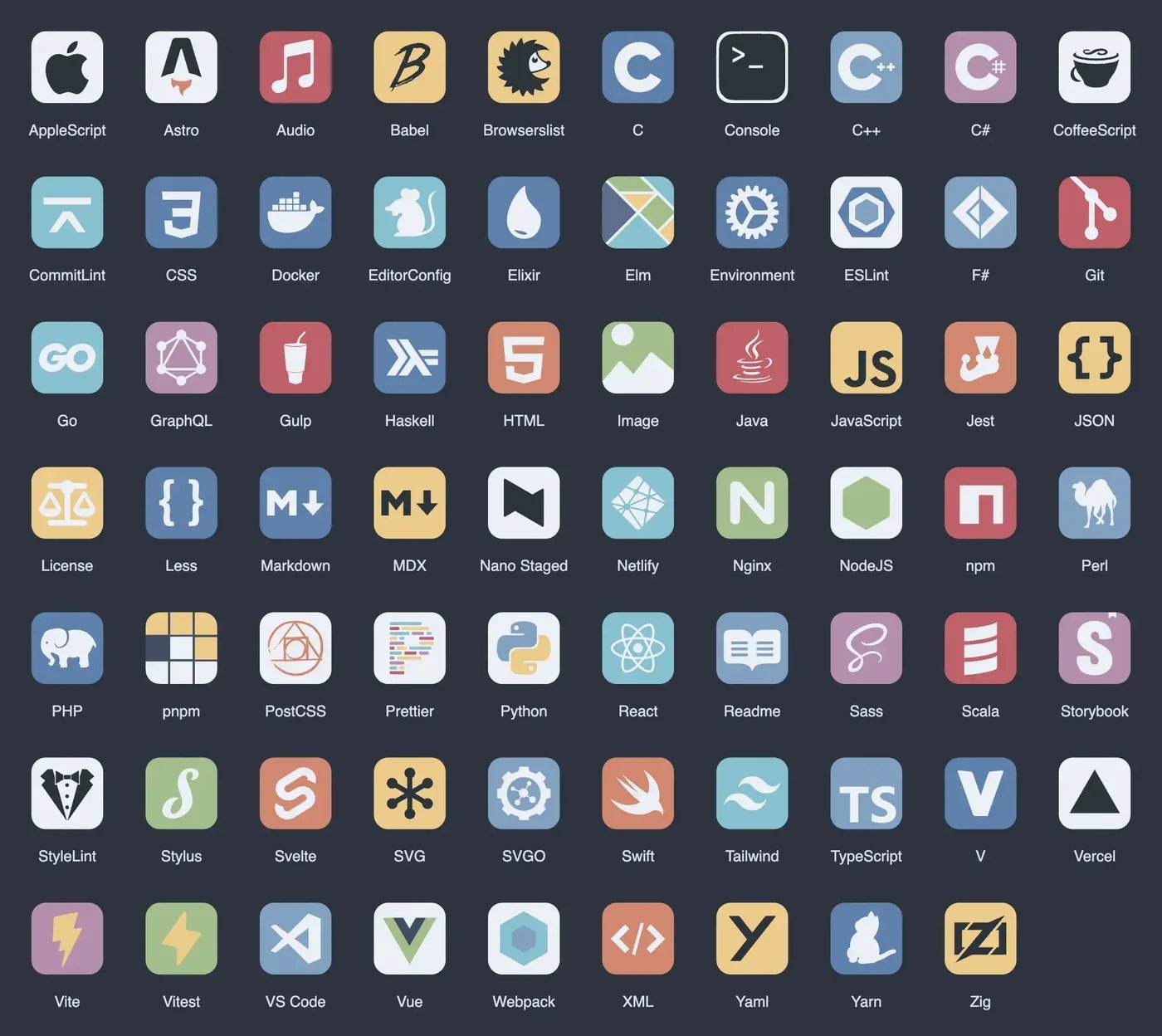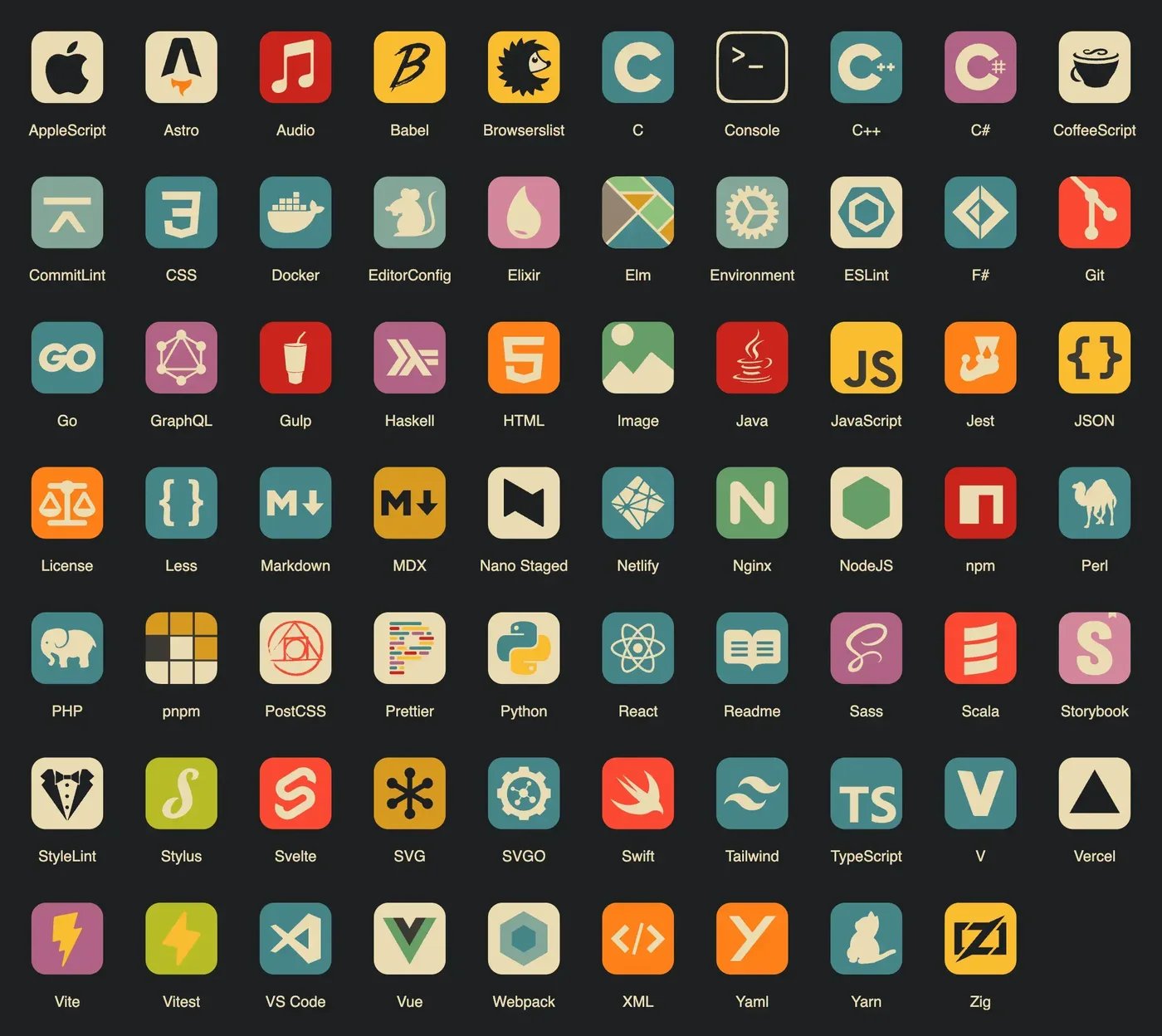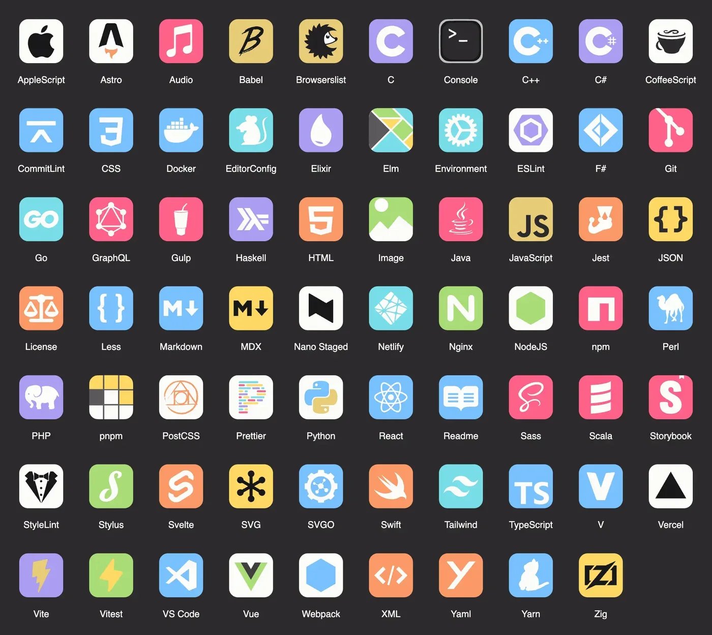 Это иконочная тема, где цвета иконок автоматически адаптируются под цветы темы редактора. Это делает среду разработки визуально гармоничной и красивой.