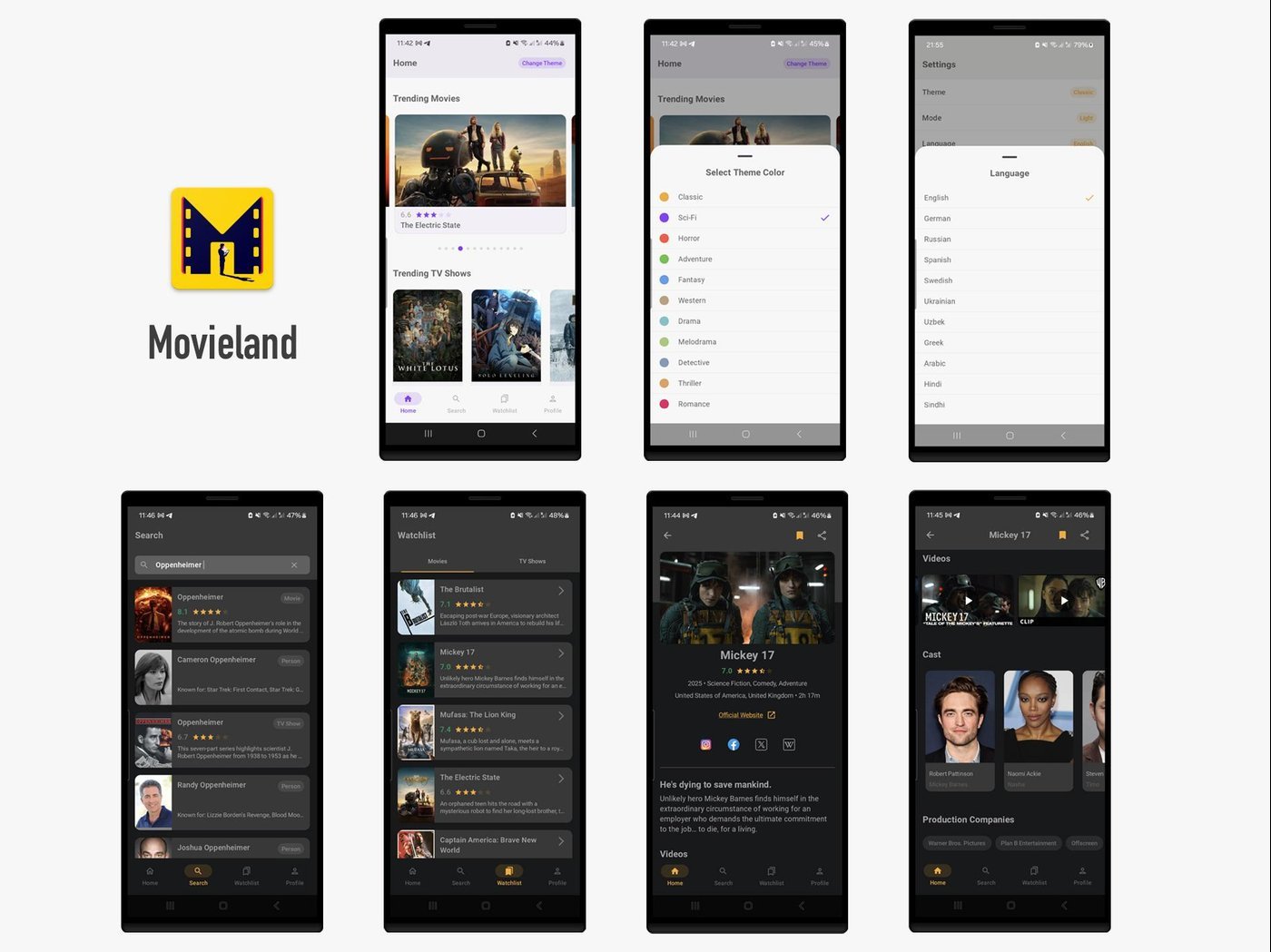 Movieland — моё Android-приложение (iOS-пользователи, простите 🙏) для тех, кто любит фильмы и сериалы и хочет находить, что посмотреть, без перегруженных интерфейсов, рекламы и хаоса.