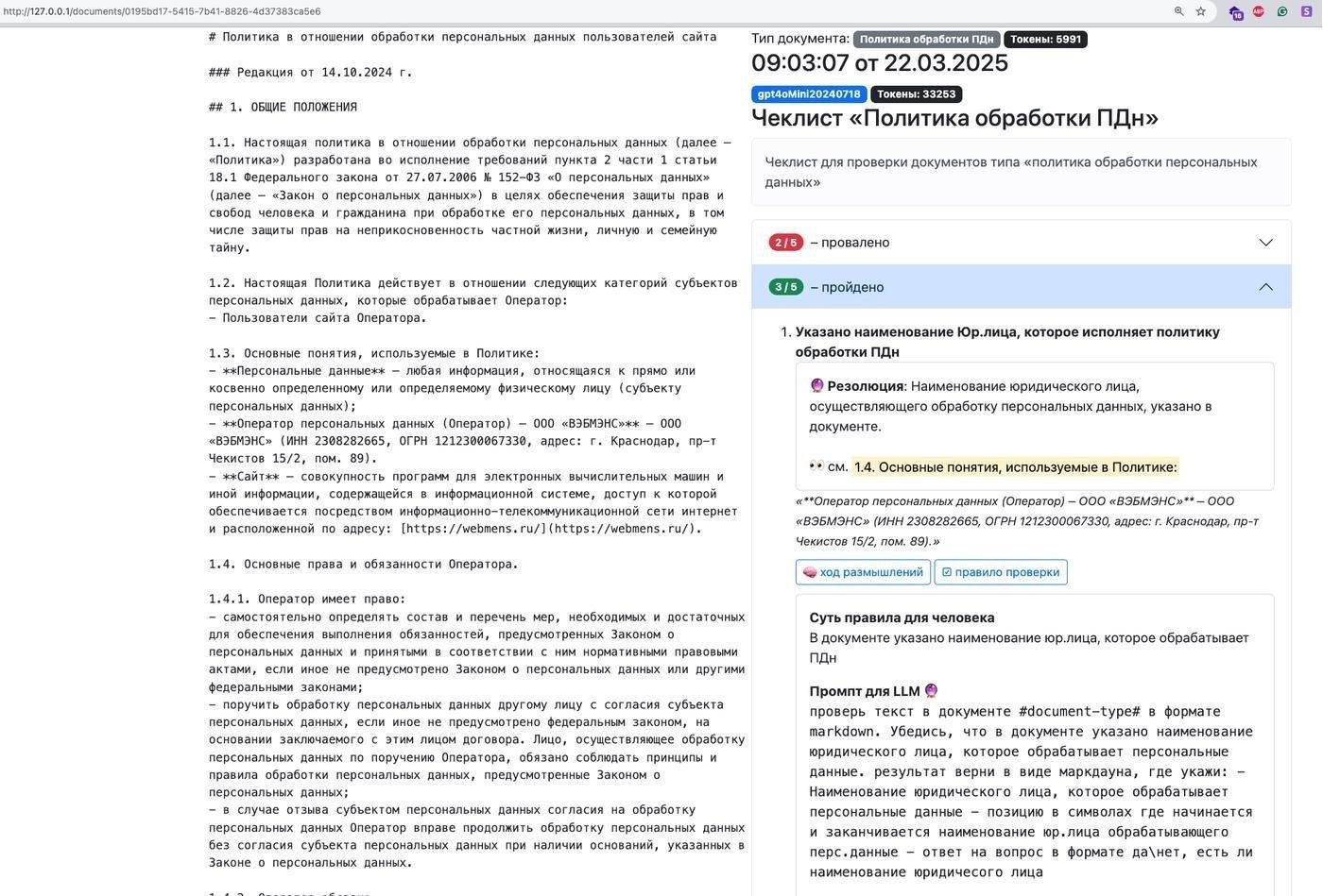 Сервис автоматической проверки документов по чеклистам с помощью AI.