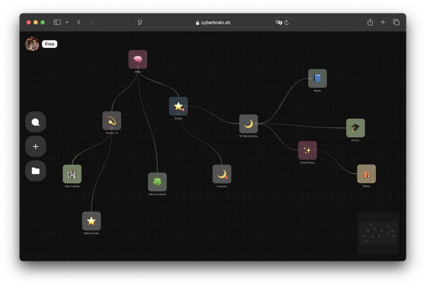 CyberBrain - это ассистент для заметок, который сам наводит порядок в хаосе. Мы просто устали от того, что мысли, ссылки и идеи разбросаны по Telegram, Twitter, почте и еще десятку мест, а все эти модные системы организации заметок не работали.