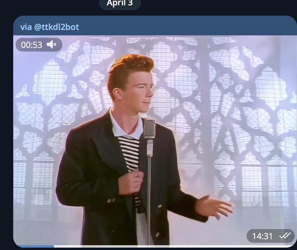 inline-бот для телеги, который позволяет смотреть тикток видосы, не заходя в тикток. Если ваш драгоценный собеседник любит навалить мемесов из этой сети - научите его делать это через бота :)
