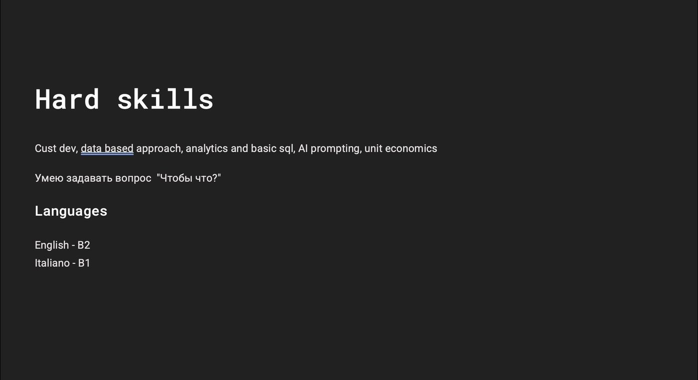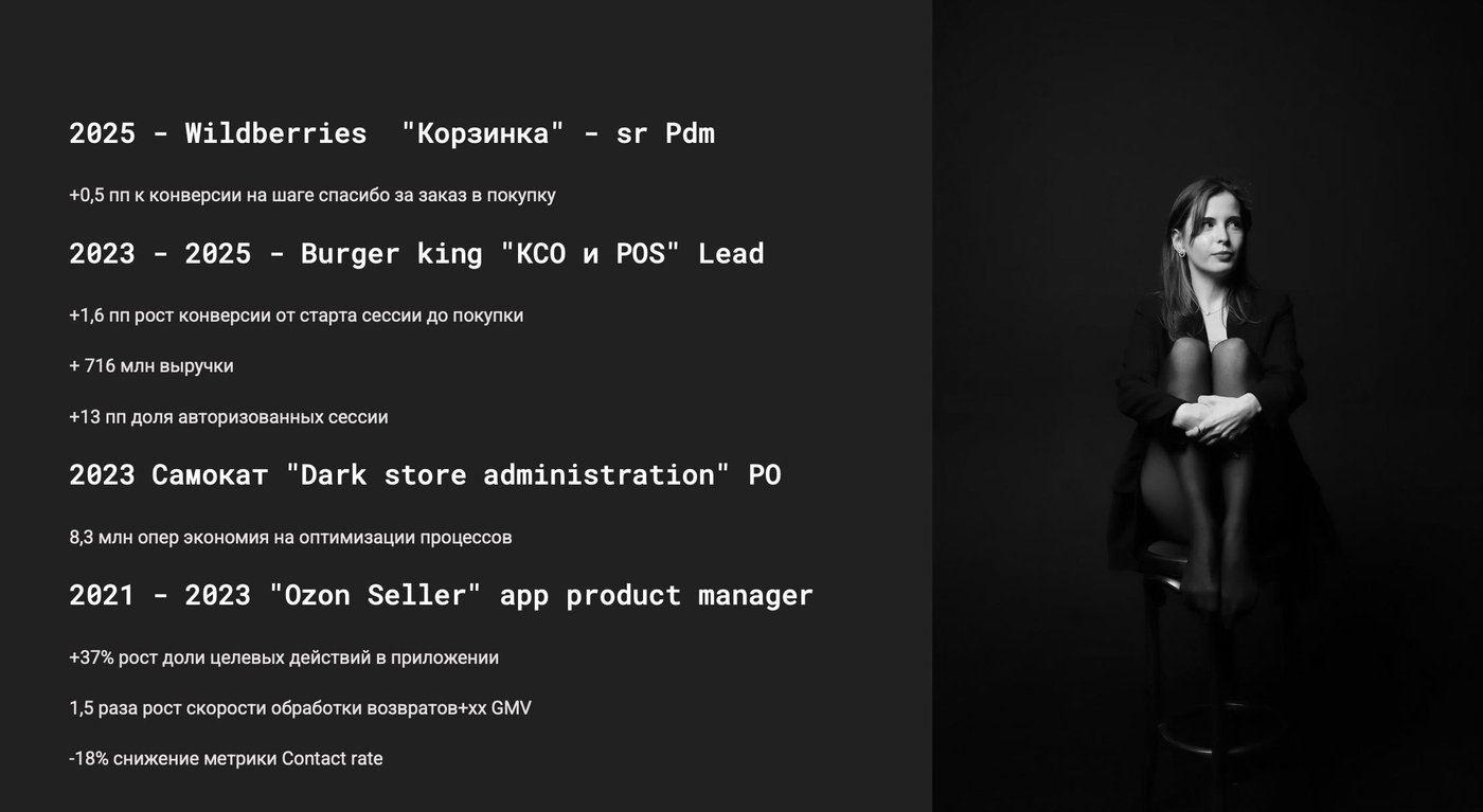Мои сильные стороны: продуктовый подход, ownership, умение видеть систему целиком и переключаться между контекстами. Немного психологии, много 1-on-1, забота о людях как основа процессов.